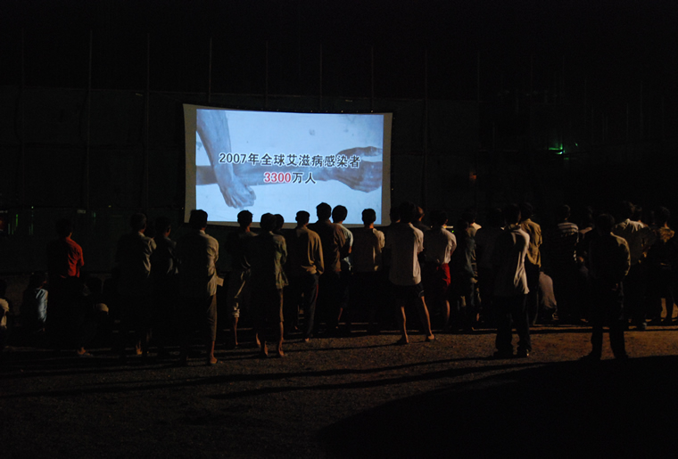 海淀 防艾宣传--工地放电影200人观看