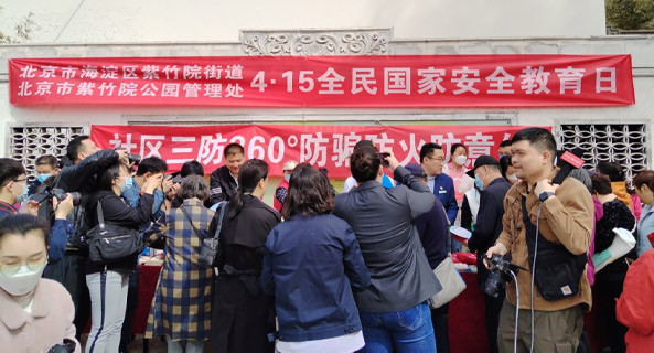 紫竹院街道以“4·15全民国家安全教育日”为契机,在紫竹院公园北门开展禁毒宣传活动,现场悬挂“珍爱生命,…