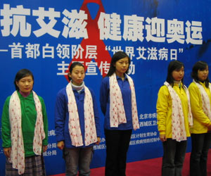 此次宣传活动以白领阶层为主要宣传对象,记者在现场看到,西城区成立的首支“红丝带青年志愿者”队伍成员均来自金融街的白领阶层,北京名苑酒店的职员马小姐表示,公司白领文化层次普遍较高,思想观念开放,工作压力大,因此艾滋病离白领并不遥远。我们首先在生活中应洁身自好,其次是要更多地承担社会责任,积极投身于防艾知识宣传。