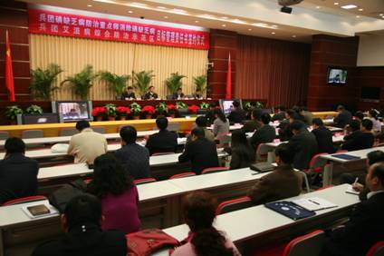 2009年12月7日下午,兵团第二轮全国艾滋病综合防治示范区(以下简称示范区)启动电视电话会在新疆乌鲁木齐市召开,在主会场来自兵团6、7、8、12、建工师的行政领导和卫生局长、疾控中心主任、业务人员以及兵团直属卫生单位和兵团多部门成员单位共120人参加了会议。各师设立分会场,由各师主管卫生工作的行政领导、师卫生局长、疾控中心主任、多部门成员单位领导参加。