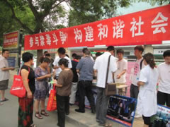 6月26日是国际禁毒日,为了宣传毒品危害,让更多的人远离毒品,同时使人们了解到吸毒与艾滋病的关系,6月26日上午,大兴区CDC走上街头开展了主题为“参与禁毒斗争 构建和谐社会”的宣传活动,北京市石油化工学院六名艾滋病宣传志愿者也参加了此次活动。