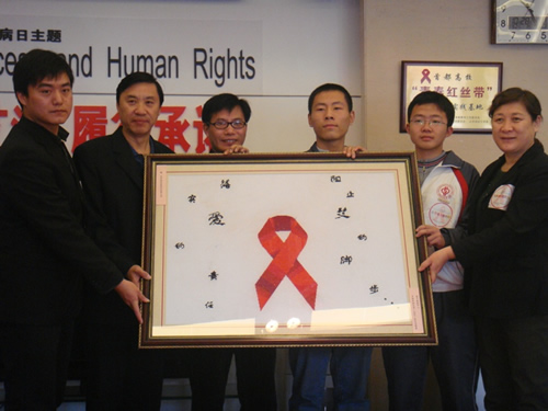 2010年10月28日上午,昌平区疾控中心工作人员及中国石油大学的学生代表把亲手绣制的红丝带十字绣图赠送给北京地坛医院“红丝带之家”。