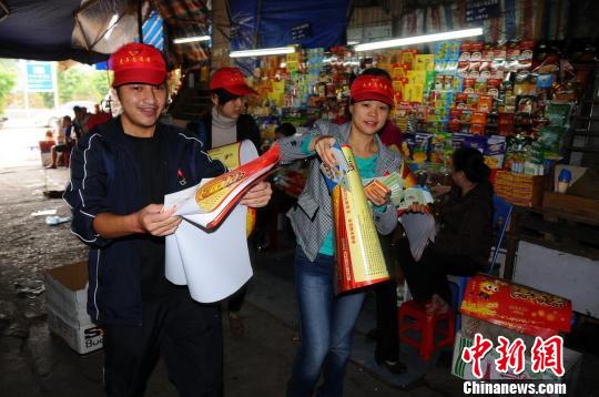 河口县青年志愿者到人员集中、密集的边贸街和闹市区进行宣传。