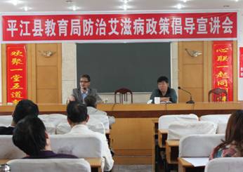 中学以上在校学生是艾滋病防治宣传教育的重点人群。湖南省平江县自2009年实施艾滋病综合防治项目工作以来,县示范区教育局和卫生局(疾控中心项目办)联合组织,对全县所有初中以上在校学生开展防治艾滋“面对面”宣讲教育活动。截至2012年3月31日,已按时完成全县55所初中、7所高中和5所职业中学60000多名在校学生(第一轮三年周期)普及艾滋病防治知识教育。同时县教育局局长吴定辉带头参加局机关干部职工“艾滋病防治政策倡导”宣讲学习活动;余作成副局长和李杰主任组织主持全县中学政教主任防治艾滋病培训活动;下发“艾滋病防治对策”和“直面艾滋病”录像光盘150只到各乡镇初中以上学校;开办“艾滋病防治宣传专栏”70个;组织中学生志愿者参加“3•24”抗痨防艾、“6•26”禁毒防艾和“12•1”全民防艾广场宣传和上街游行活动。宣传活动扩大了社会影响,营造了防艾氛围,全面提升了在校学生参加防治艾滋病的义务意识和浓厚兴趣。