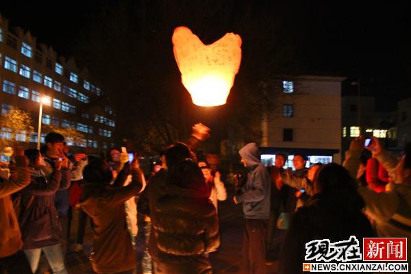 寄托着学子们爱心愿望的孔明灯即将升起。