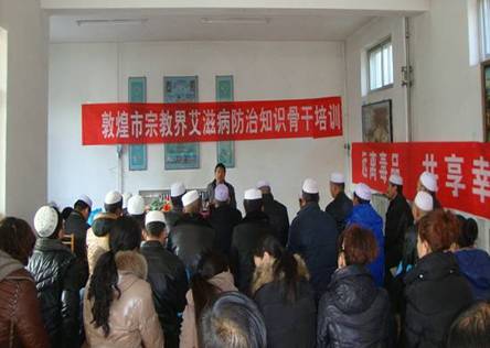 为进一步推动敦煌市艾滋病宣传教育工作,大力提升宗教界人士和信教群众预防艾滋病的自觉性,在第26个“世界艾滋病日”来临之际,敦煌市艾滋病综合防治示范区工作办公室联合市民族宗教局、伊斯兰教协会,于11月29日,在敦煌市清真寺举办了一场“行动起来 向‘零’艾滋迈进”艾滋病防治宣传服务活动。