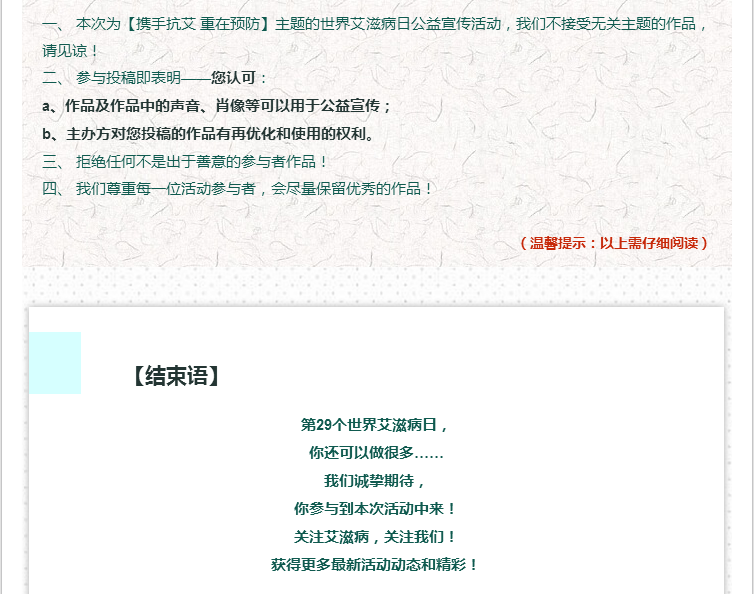 “携手抗艾,重在预防”照片和微视频作品征集