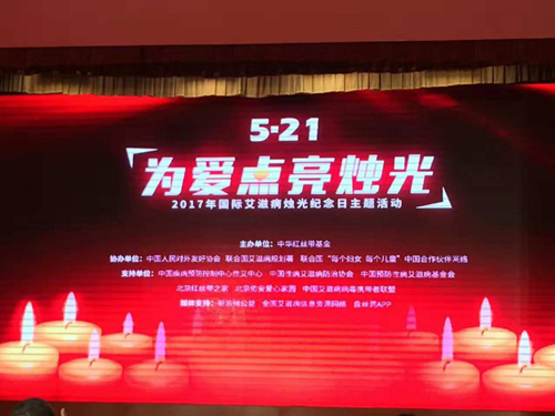 2017年5月21日是第34个国际艾滋病烛光纪念日,为了悼念因艾滋病逝世的患者,同时鼓励艾滋病人们勇敢面对病魔,由中华红丝带基金主办的“为爱点亮烛光”主题活动在中国人民对外友好协会礼堂举行。