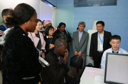 10月15日上午,由政府间“南南合作”项目支持,应国家卫生计生委邀请,来自非洲、东南亚国家的19名艾滋病防治机构领导和代表在中国疾控中心艾防中心合作室张大鹏主任陪同下,参观访问了淡蓝公益检测室和Blued公司。公司副总裁、首席医学官米国栋博士介绍了淡蓝公益应用Blued开展“互联网+HIV防控”的实践经验,代表团一行对移动智能技术与艾滋病防治结合表现出强烈兴趣,双方就快速检测、Blued预约平台、感染者转接、信息安全保护等问题进行了深入交流。