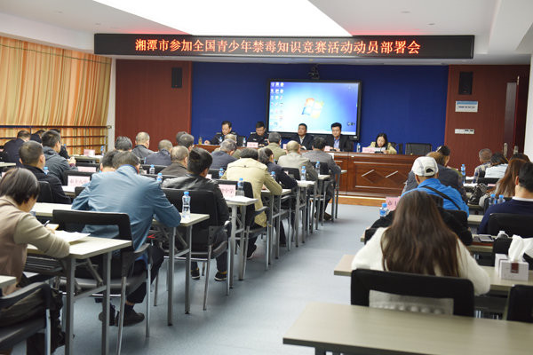 湘潭市教育局党委委员、工会主席王大力在会上动员全体参会人员全面贯彻“落实立德树人的根本任务,发展素质教育,推进教育水平,培养德智体美全面发展的是社会主义建设者和接班人”指示精神,强化工作的推进,抓好抓实学校禁毒教育工作,积极发动、广泛宣传、加强联动、认真组织好全国青少年禁毒知识竞赛,通过教育学生达到教育家长的目的。