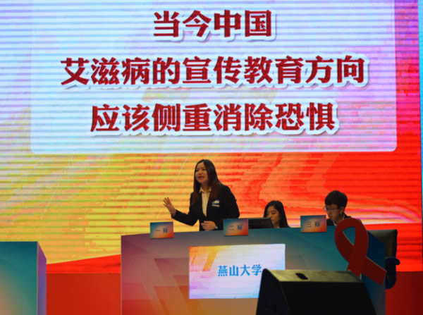 11月25日,在中国人民公安大学举行了辩论赛的决赛。国务院防治艾滋病工作委员会办公室副主任,国家卫生计生委疾控局副局长夏刚;国务院防治艾滋病工作委员会办公室主任助理、中国疾病预防控制中心性病艾滋病预防控制中心主任韩孟杰;天津市重点疾病预防控制和免疫规划工作领导小组办公室主任、天津市卫生计生委副主任王栩冬;河北省防治艾滋病工作委员会办公室主任、河北省卫生计生委党组成员、河北省中医药管理局局长姜建明;中国预防性病艾滋病基金会理事长王玉民(少将),以及来自北京市、天津市和河北省卫生计生委、教委、疾病预防控制中心、北京性病艾滋病防治协会、首都高校青春红丝带社团领导小组的领导、嘉宾及高校大学生共计500余人参加了此次活动。中国预防性病艾滋病基金会红丝带大使杨鹤城主任通过生动形象的表演为防艾控艾事业贡献出自己的一份力量。