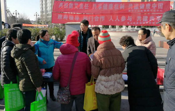 为了做好我区宣传工作,区卫计委、区疾控中心、拱辰街道办事处、区团委、区戒毒所等多家单位,于12月1日上午,在昊天广场,开展了主题活动。活动现场悬挂了大型宣传横幅,同时向居民发放宣传材料、解答群众关心的问题。共发放宣传折页等材料2000余份,发放安全套、洗洁精等宣传品500余件,解答公众提出的问题20余条,收到了良好的宣传效果。