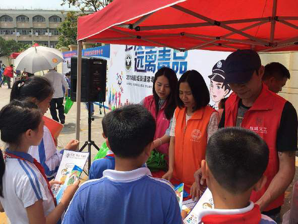 中国禁毒网讯 近日,深圳宝安区航城街道九围社区开展禁毒宣传进校园的活动。