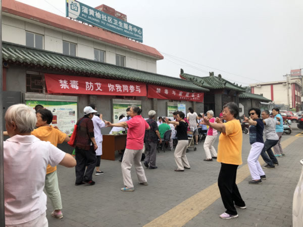 2018年6月26日上午,丰台区疾病预防控制中心、丰台区蒲黄榆社区卫生服务中心、大红门街办事处与石榴园派出所联合在丰台蒲黄榆社区卫生服务中心石榴园分中心北京市社区药物维持治疗第七门诊举办6.26国际禁毒日宣传活动。
