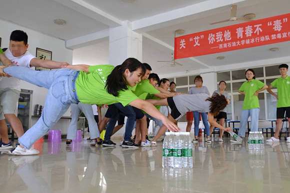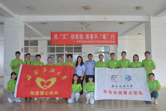 这支实践队是由全国百强社团——西南石油大学知源爱心协会组建的,除了15名大学生,辅导员文雪、胡华丹、王晨晨也参加了活动。为了确保活动扎实有效,实践队制订了周密的计划,下足了功夫进行准备。出发前,他们参观了新都区禁毒教育基地,学习毒品相关知识和中国禁毒相关政策,了解当前中国禁毒防艾形势,充分认识到开展这次禁毒防艾社会实践的意义。实践队员小刘说:“每天的日程排得满满的,虽然非常辛苦,但很值得,这个暑假过得很充实。”