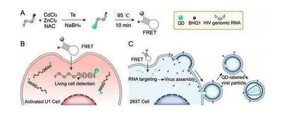 中国科学院武汉病毒研究所崔宗强研究员与武汉大学何治柯教授合作构建了一种新型量子点纳米信标,这种信标可实现艾滋病毒RNA单分子标记与示踪。