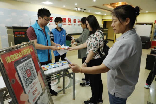 9月21日,受疫情影响而暂停对外开放的区总工会职工健身俱乐部恢复对外开放。预约前来健身的职工进入俱乐部大厅后,便拿到了区总工会志愿者发放的预防艾滋病宣传折页。