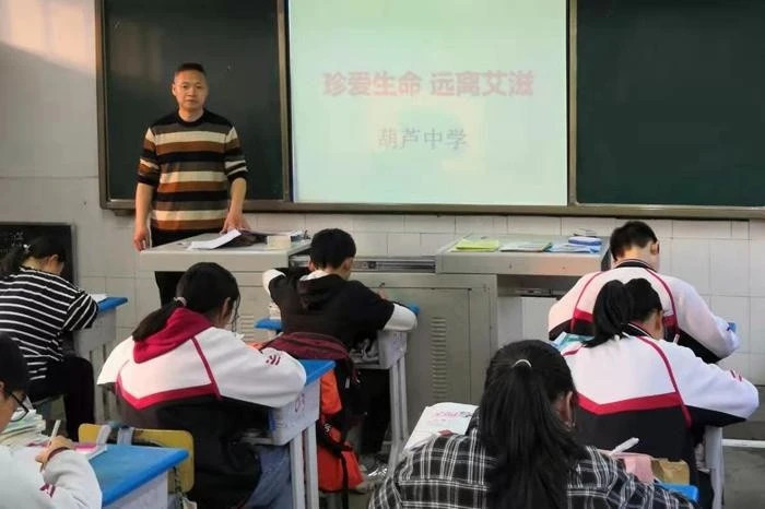 为引导学生了解艾滋病知识,认识艾滋病的严重危害,关爱艾滋病人,增强自我保护意识,3月16日,沙湾区葫芦中学各班召开主题班会,开展“艾滋病预防”主题教育活动。