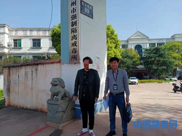 图为民警接戒毒期满冯某出强制戒毒所。 中国禁毒网发