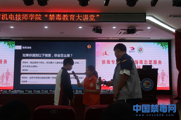 中国禁毒网讯 为展示禁毒志愿服务成果,4月28日,广州市白云区松洲街道联合广州市机电职业技术学院,举办以“走进青春校园,吹响禁毒号角”为主题的禁毒专题教育暨禁毒志愿服务成果展示活动。