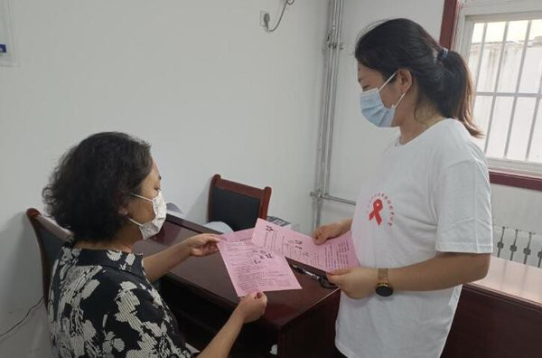 活动中,两名健康宣传志愿者对基层司法行政工作人员发放了预防艾滋病知识宣传材料,并对当前我国以及我市的艾滋病情况进行普及,对什么是艾滋病、艾滋病是怎样传播的、艾滋病的预防方法等相关知识进行了讲解。