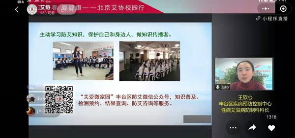 近年来,艾滋病的魔爪渐渐伸向了学生群体,高校艾滋病疫情也受到各界高度关注,因此,高校防艾宣传刻不容缓。为了提高广大学生对艾滋病的了解,使同学们能正确地认识艾滋病,推动高校防艾宣传工作,12月14日晚,北京性病艾滋病防治协会联合北京电子科技学院,举办了一场以“因爱同心,防艾同行”为主题的线上防艾宣传讲座活动,丰台区疾病预防控制中心性病艾滋病科科长王欣心和北京佑安医院爱心家园恬园工作室负责人段义作为讲师进行授课,反响良好,全程有1443人次观看,1600人次点赞,155人参与评论。