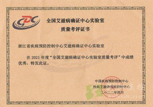 为落实《全国艾滋病检测工作管理办法》、《全国公共卫生信息化建设标准与规范(试行)》和《职业暴露感染艾滋病病毒处理程序规定》的有关要求,规范艾滋病检测实验室质量管理及艾滋病病毒职业暴露事件报告管理,中国疾控中心国家艾防中心组织完成了 2021 年全国艾滋病确证中心实验室质量考评工作并于近期反馈结果。浙江省疾控中心在此次质量考评中获得优秀成绩,综合得分98.52分,名列省级疾控中心前茅。自中国疾控中心开展此项工作以来浙江省疾控中心连续23年获得优秀成绩。