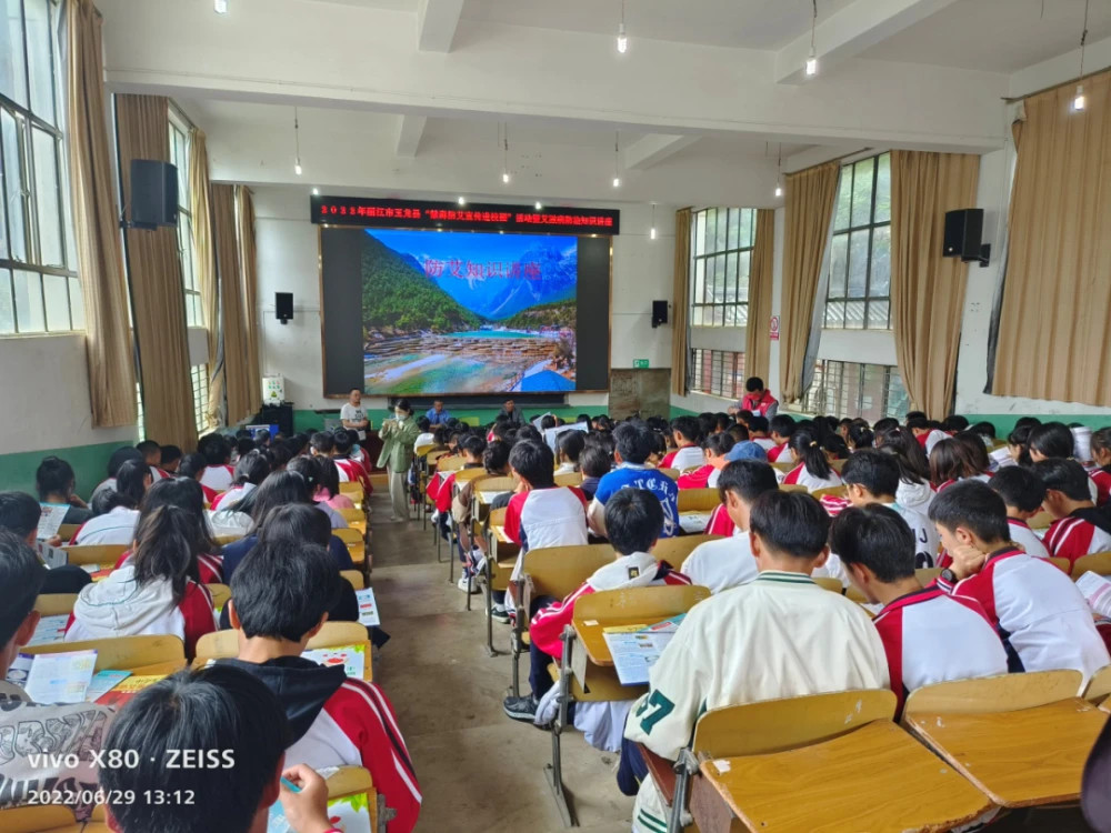 6月29日我院刑事检察部门干警同县公安局禁毒大队民警、县疾控中心工作人员到玉龙县田家炳民族中学开展“禁毒防艾宣传进校园”活动,我院干警结合办案实际,就常见毒品种类、毒品危害、涉毒犯罪及涉毒典型案例等进行了认真讲解,呼吁青少年学生要“珍爱生命,远离毒品”。