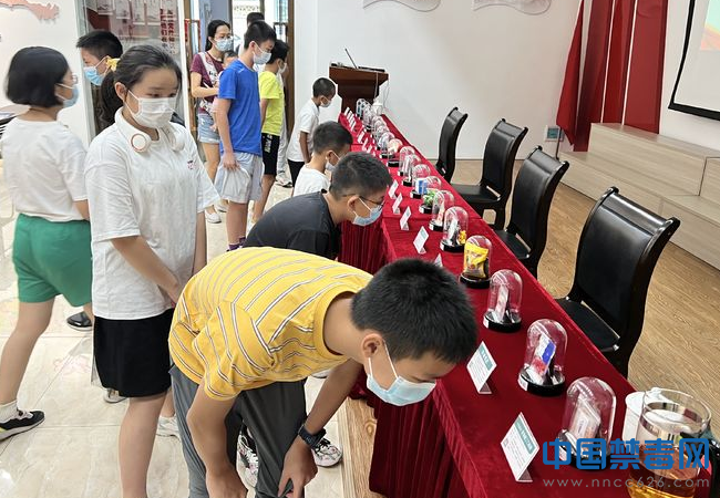 图为青少年观察毒品仿真模型。中国禁毒网发