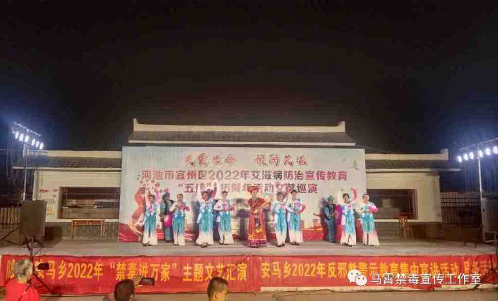 为加大禁毒防艾宣传教育力度,提高广大人民群众的禁毒防艾意识,助力乡村振兴。近日,河池市宜州区安马乡与区委宣传部、区防艾办联合举办了“关爱生命 预防艾滋”禁毒防艾宣传汇演活动。