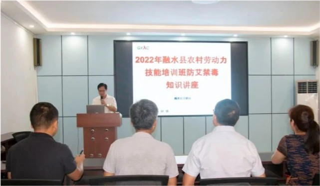 为切实提高广大农民工对防治艾滋病和毒品知识的知晓率,增强广大农民工的防艾和禁毒意识以及拒毒能力,有效遏制外流吸毒贩毒的发生。近日,融水苗族自治县卫生健康局在青少年预防艾滋病宣传教育基地组织对即将外出务工的群众开展防艾、禁毒知识培训,县卫健局党组书记、局长邓卫健参加培训并讲话。
