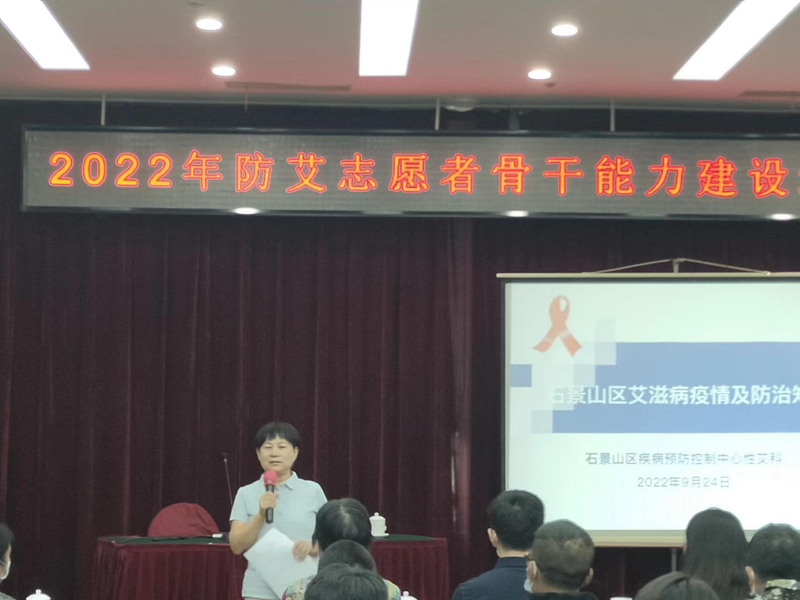 为充分发挥社会组织在性病艾滋病防控工作中的作用,进一步提升防艾志愿者工作能力,推动社会组织防艾工作深入开展,更好的落实《遏制艾滋病传播实施方案(2019-2022年)》,北京性病艾滋病防治协会联合北京市石景山区疾病预防控制中心、北京市石景山区艾滋病皮肤性病防治协会、北京牡丹园志愿者协会、折翼天使小组共同举办了“2022年防艾志愿者骨干能力建设第三期培训”。来自社区小组志愿者及相关人员共计50余人参加了此次培训活动。北京市石景山区艾滋病皮肤性病防治协会刘大华会长主持了此次培训。