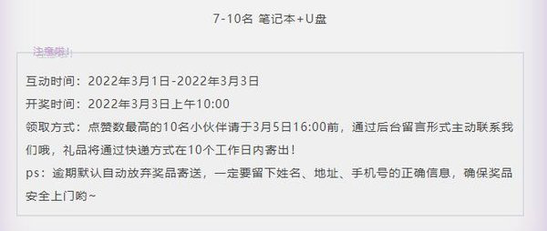 我们将选取点赞数最高的十名小伙伴寄出礼品!
