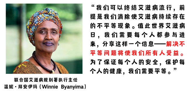 今年12月1日的世界艾滋病日,联合国艾滋病规划署呼吁每一个人身体力行,消除终结艾滋病流行的不平等现象。不平等问题可以被解决,并非不可避免。