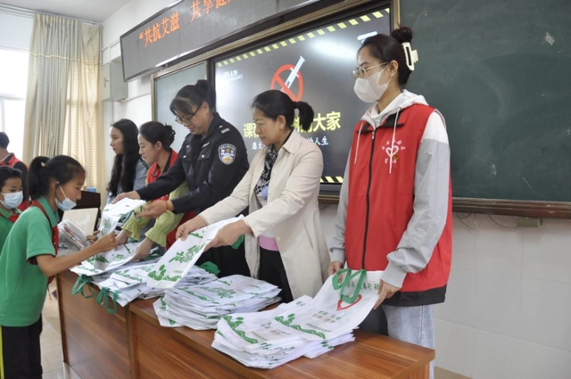 活动中,思茅区12355青少年平台张娅楠老师作以“全民禁毒 健康生活”为主题的宣传教育课,围绕“什么是新型毒品”“常见的新型毒品种类”“毒品的巨大危害”“青少年如何防范毒品”四个方面,向同学们详细讲解了毒品的危害及严重后果、艾滋病传播方面的相关知识,并通过现场互动的方式,让同学们在课堂上积极发言,回答自己对毒品、艾滋病的认识和预防知识,形成了“珍爱生命、远离毒品、预防艾滋”的良好氛围。随后,学校老师、青年志愿者还为同学们发放了禁毒防艾宣传手册。