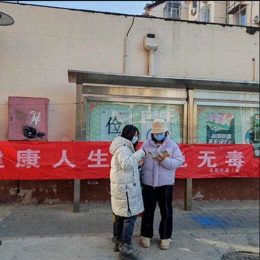 1月18日,西城区大栅栏街道禁毒工作站在社区开展以“亲人更健康 社会更有序”为主题的禁毒宣传活动。