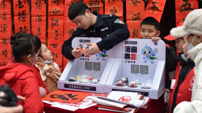 春节期间,广东省深圳市盐田区禁毒办联合中英街管理局及禁毒社工借助历史博物馆广场举办春节集市的机会,开展禁毒宣传活动。活动期间,禁毒社工利用禁毒宣传折页向群众讲解毒品知识,剪纸老师、禁毒社工和群众一起剪纸庆新春,并将禁毒元素融入剪纸活动中,现场气氛活跃。