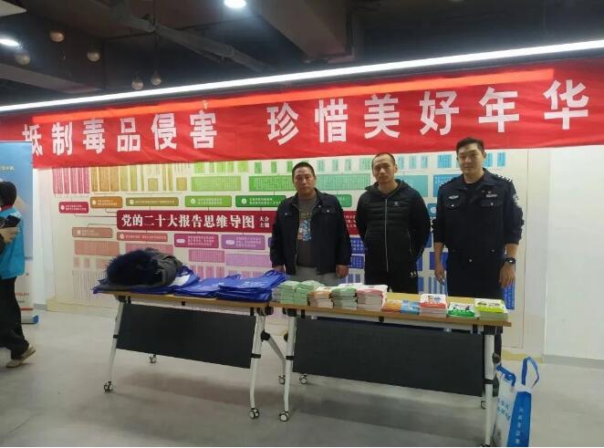 东风地区禁毒办以防诈骗宣传活动为契机,联合各部门开展禁毒宣传活动,工作人员在现场播放《北京市禁毒条例》宣传视频,摆放禁毒知识宣传展板,向参加活动的群众发放禁毒宣传折页、“六进”宣传读本、禁毒宣传品,为大家讲解毒品的种类、危害以及如何识别和预防抵制毒品等知识,并有针对性地引导中老年人提高对毒品的防范意识,为打击毒品违法犯罪奠定了良好的群众基础。