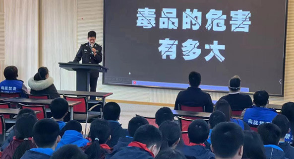 活动中,民警结合在戒毒所的工作经验和掌握的吸毒案例,向学生讲解毒品起源、毒品种类、毒品危害、防毒拒毒方法等知识。授课过程中,穿插互动环节,通过问答和发放禁毒纪念品的形式,让学生们更加深刻地认识毒品及其危害,自觉远离毒品,不盲目追求刺激,学会抵制不良诱惑,永远不要抱有好奇之心去尝试第一口,懂得树立积极向上的生活态度。