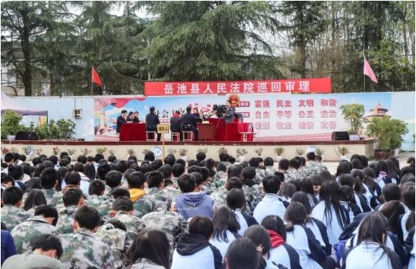 近日,四川省岳池县法院、检察院走进广安电力职业技术学校,通过巡回公诉的方式,对李某某涉嫌贩卖毒品罪、容留他人吸毒罪一案进行公开审理,该校1400余名师生现场旁听庭审。