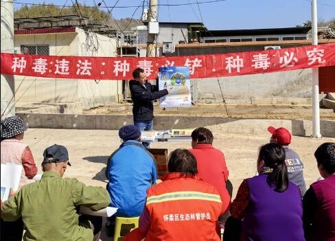 怀柔区汤河口镇综治办工作人员、禁毒社工来到连石沟村开展禁种铲毒宣传活动,禁毒社工向村民们发放禁毒宣传手册,在显眼位置张贴禁毒宣传海报,为大家详细讲解非法种植罂粟等毒品原植物的违法性、毒品原植物的特征与危害等知识,呼吁广大群众自觉抵制非法种植罂粟等违法犯罪行为,让群众进一步掌握了“种毒违法,种毒必铲,种毒必究”的禁毒法律法规常识,进一步增强了广大村民的依法禁种意识,营造了全民禁毒的良好氛围。
