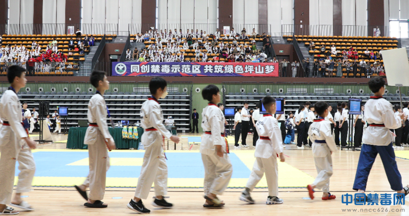 中国禁毒网讯 8月12日-13日,中国特色先行示范区“坪山杯”深圳跆拳道公开赛在深圳技术大学举办,来自马来西亚、泰国,以及中国台湾、香港、新疆、深圳、广州等54支代表队,共814名6-18岁的青少年运动员参与了比赛。