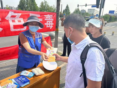 沙河镇禁毒工作领导小组办公室联合综治办、司法所、交通警务站在城铁沙河站东侧开展以“依法禁毒 全民参与”为主题的禁毒普法宣传活动。禁毒社工和各部门工作人员在活动现场悬挂禁毒宣传横幅,向过往群众发放禁毒宣传资料,为大家讲解毒品的种类与危害、禁毒法律法规、种植毒品原植物的违法责任等知识,同时呼吁广大群众积极参与到禁毒人民战争中来,向公安机关举报涉毒线索,进一步扩大了禁毒宣传的覆盖面,营造了全民关心禁毒、支持禁毒、参与禁毒的浓厚氛围。