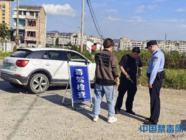 图为毒驾检查现场。中国禁毒网发
