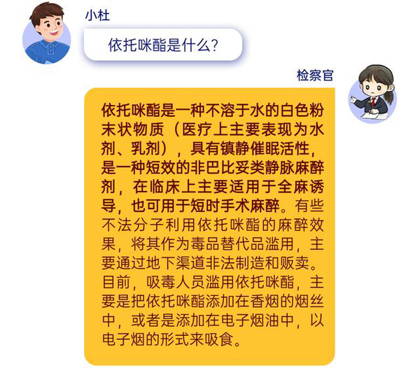 近期,一种新型的“上头电子烟”在年轻群体间盛行,大部分年轻人在吸食后会出现麻痹、晕眩、痉挛、震颤、醉酒感等。经检测,发现该电子烟中含有“依托咪酯”!