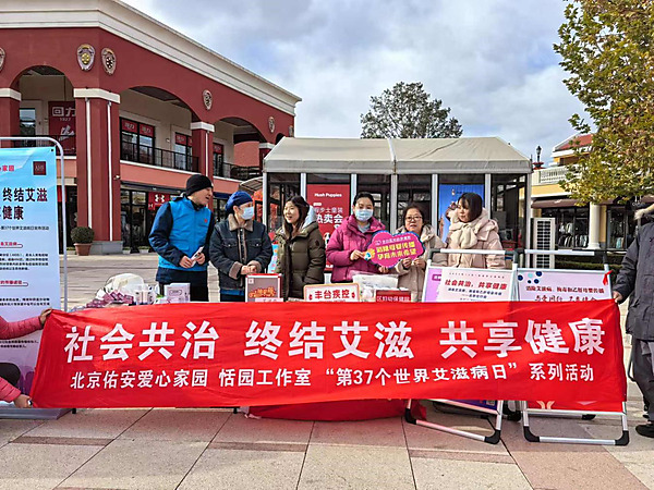 2024年12月1日是第37个“世界艾滋病日”,今年的宣传主题是“社会共治,终结艾滋,共享健康”。为进一步提升全民对艾滋病防治的关注,号召全社会积极行动起来,提升公众的健康水平,努力消除艾滋病的危害,11月26日,丰台区疾控中心联合北京市丰台区玉泉营街道总工会、北京佑安爱心家园、佑安恬园工作室、丰台区妇幼保健院共同在花乡奥莱村开展预防艾滋病宣传活动。
