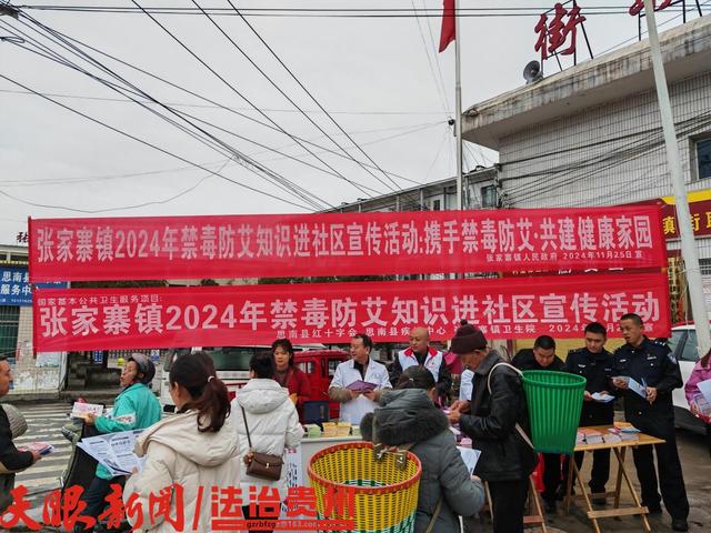 禁毒防艾进社区。思南县红十字会、思南县疾控中心联合张家寨镇派出所、卫生院在张家寨镇集市开展禁毒防艾进社区宣传教育活动,禁毒工作人员耐心的向群众宣讲毒品与艾滋病之间的密切关系,对毒品危害与艾滋病的传播途径及预防等方面进行详细科普,有效提高辖区群众对禁毒防艾工作的知晓率,营造了全民禁毒,抵制艾滋的良好氛围。