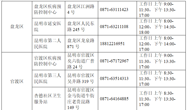 目前HIV暴露风险评估和检测以及暴露后药物预防服务主要由专业医疗机构,如艾滋病抗病毒治疗定点医院提供,昆明市的HIV暴露后预防服务可以从下列机构获取: