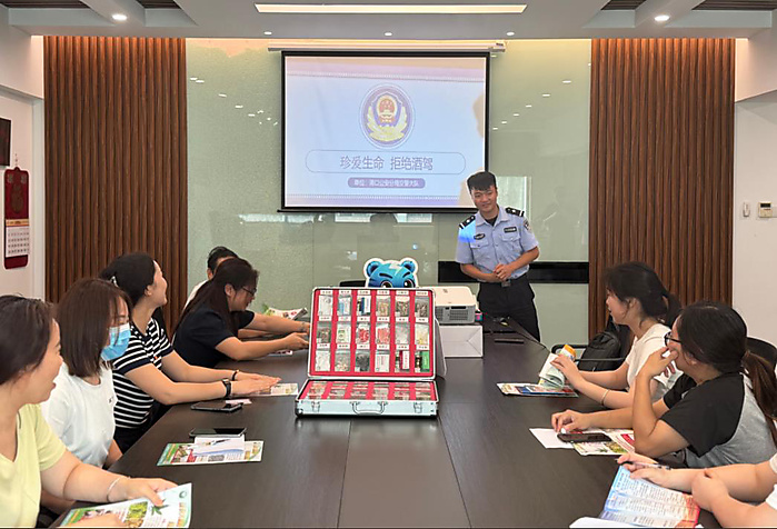 讲座现场,分成三个环节展开。首先,禁毒社工向企业参会人员派发宣传单张、展示毒品模具,讲解毒品的危害,让他们认识到毒品的隐蔽性和复杂性;其次,由交警大队负责人讲解交通安全知识,并结合毒驾分享真实案例,剖析吸毒给个人健康、家庭幸福和社会稳定带来的严重后果,告诫员工要远离毒品,谨慎交友,不接受陌生人提供的可疑食品和饮料;最后,反诈中心活动负责人开始反诈知识宣传环节。