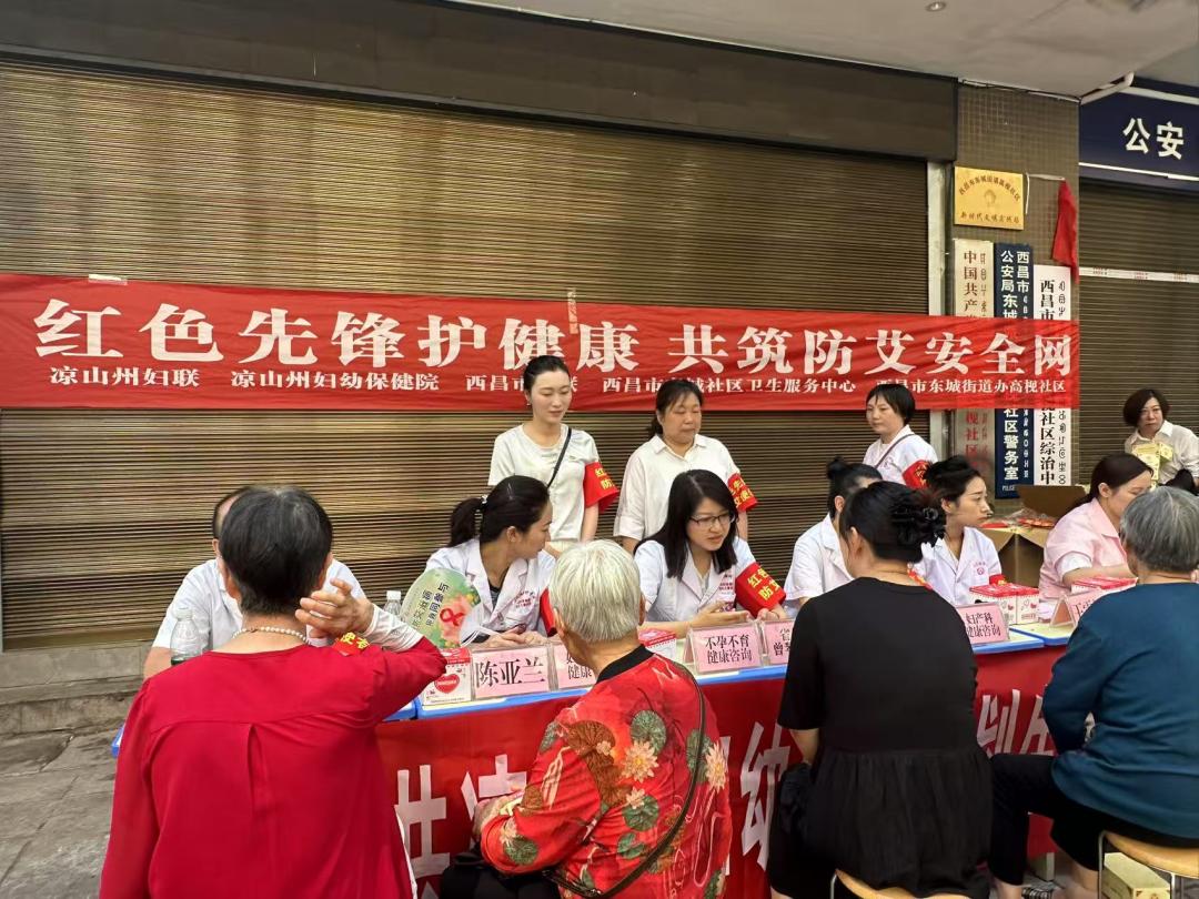 为积极响应凉山州委组织部“红色引领·共抗艾滋”主题宣传教育活动号召,充分发挥党组织和党员在防艾工作中的模范带头作用,2025年7月14日,凉山州妇联党支部联合州妇幼党支部、西昌市妇联党支部、西昌市东城社区卫生服务中心以及西昌市东城街道办高枧社区,在西昌市高枧家园共同开展“红色先锋护健康 共筑防艾安全网”主题活动。